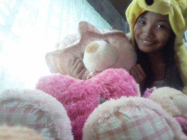 meanwhile, He, in return, gave me a cushy pink heart-shaped fluffy thing and a mini thingy i-dunno-what-you-call-it display that says "A thing is complete when you let it"